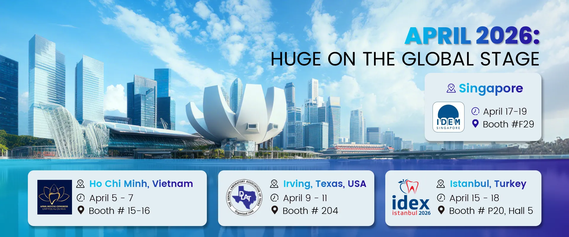 This March, HUGE is on the move. We are currently exhibiting in Dental South China and will soon bring our complete lab and clinical solutions to Expodental in Spain. Here's where you can meet us.