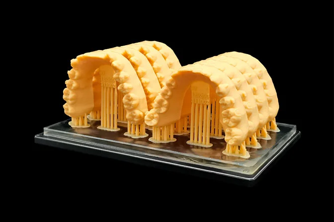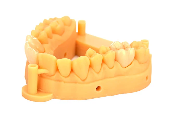 This material is typically a biocompatible resin which is suitable to produce highly detailed and accurate dental models. The great hardness and low shrinkage ensure the ability to resist deformation.