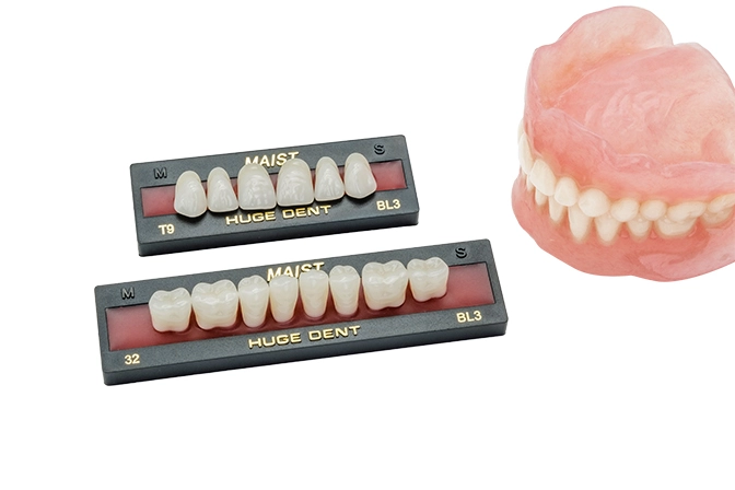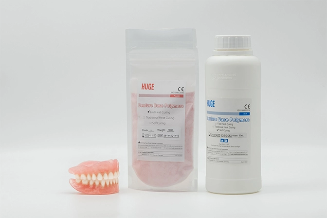 For making denture bases, HUGE offers a series of Denture Base Polymers with different curing types and shades to fulfill the needs of lab technicians. The product is featured with various benefits like natural beauty, drop resistance, no bubbles, etc.
