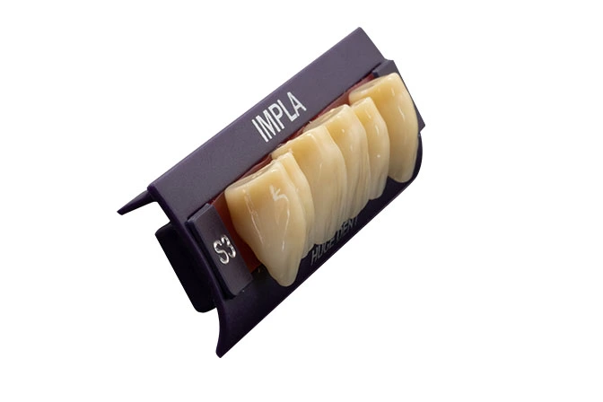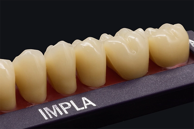 IMPLA is definitely a premium tooth line whose anterior teeth are of five-layer effect and posterior teeth are composed of three layers.