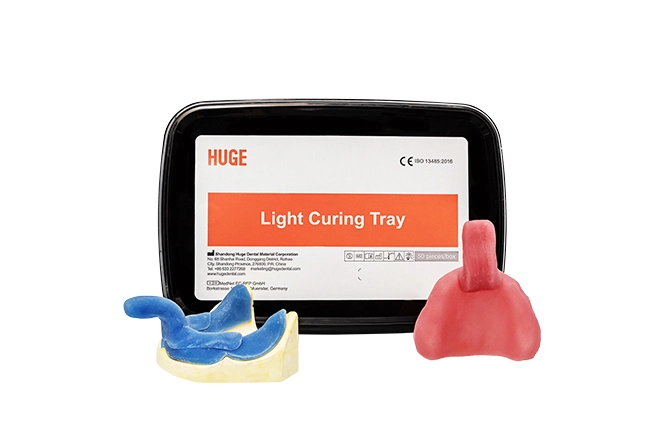 Light Curing Tray is a series of light curing resins indicated for making individual trays for impression, temporary base plates for arranging teeth and also bite plates for removable prosthesis adjusting.