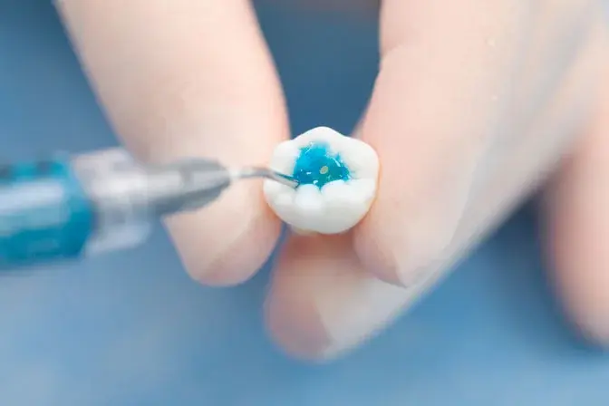 Its color is blue, which can be identified easily on the tooth or a repairing surface with contrast.