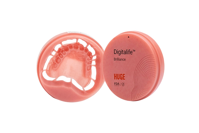 HUGE Pink PMMA is typically used for making denture base with CAD/CAM technology, providing a kind of digital material for dental laboratories. Pink PMMA owns natural gingival appearance and texture.